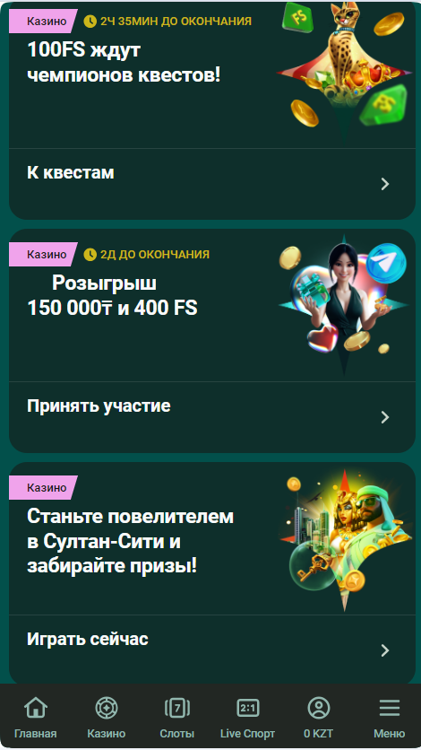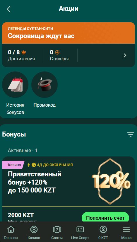 Казино Sultan Games предлагает игрокам из Казахстана и других стран несколько бонусов. Также доступны уникальные промокоды, которые можно найти в официальных социальных сетях или получить через рассылку и программу лояльности.