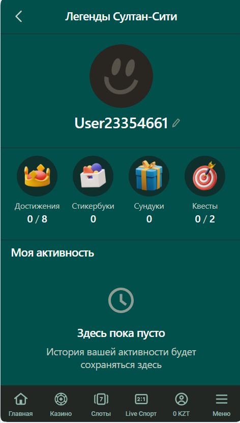 Сезонных предложений у казино немного. Однако каждый игрок может стать участником постоянной акции легенды Султан-Сити. Это бонусная кампания, в которой игроки создают свой профиль, делают депозиты и спины, чтобы собирать стикеры и достижения.